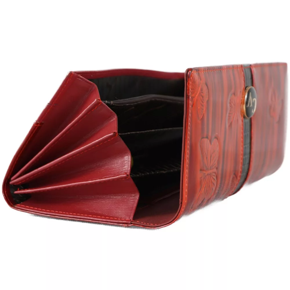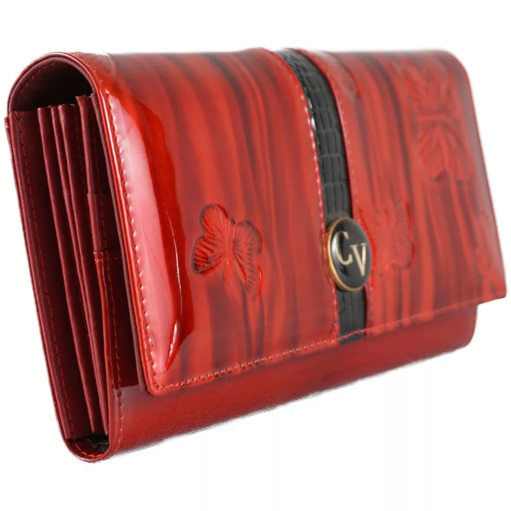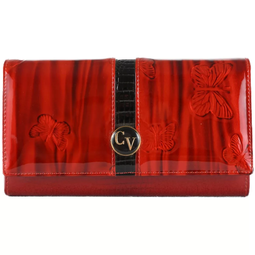Cavaldi elegáns női lakk pénztárca pillangókkal, bőr, piros színben.