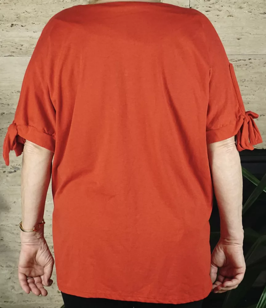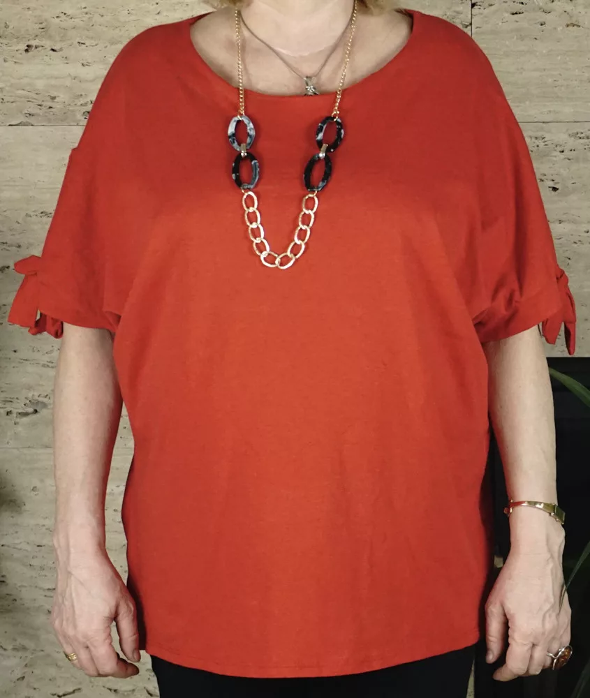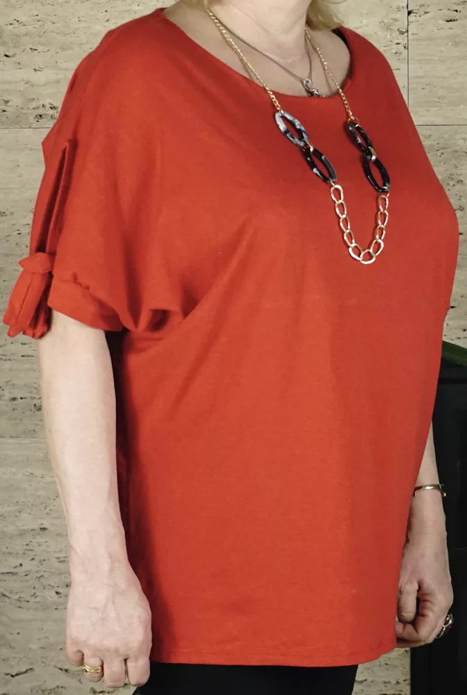 Női nagyméretű felső bő fazonnal, piros színben.