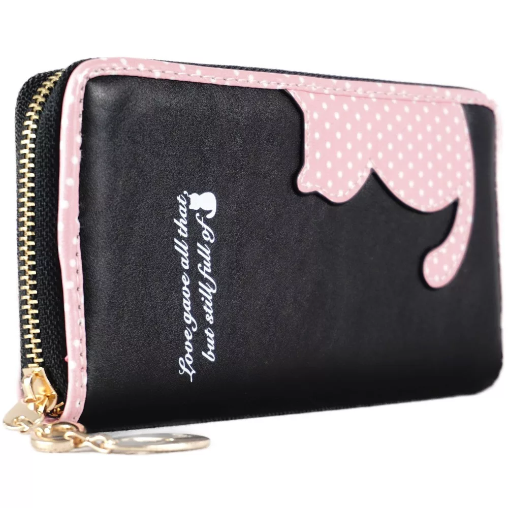 Belül 3 fő széles rekesz, 2 széles benyúlós zseb, 1 cipzáras aprótartó, 8 bankkártyatartó.