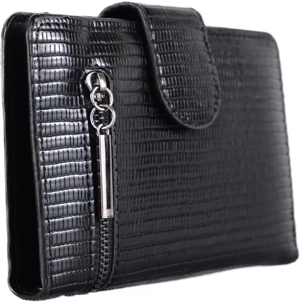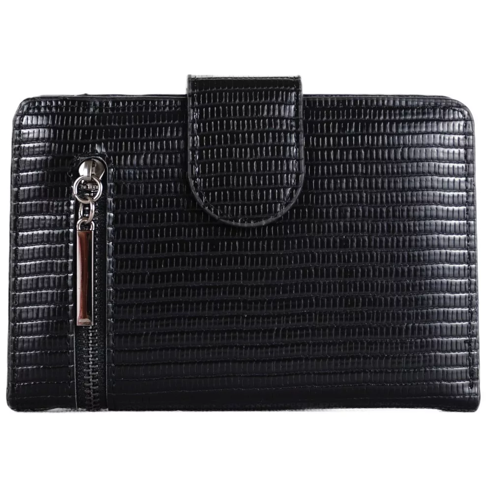 Női pénztárca kívül cipzárral, műbőr, fekete