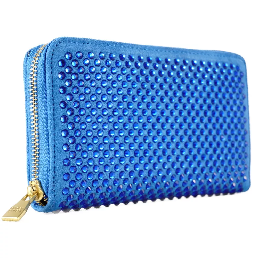 Női pénztárca kövekkel, műbőr, kék