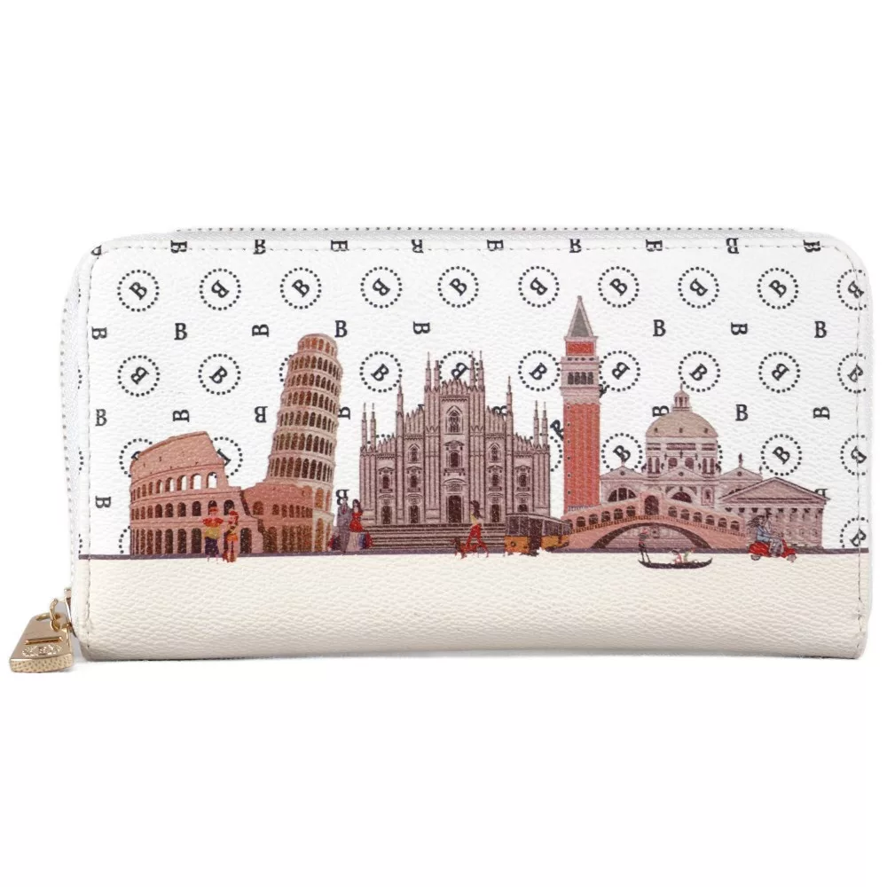 Női pénztárca városos mintával, műbőr, fehér