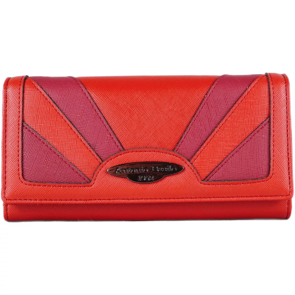 Női pénztárca varrással, csatos, műbőr, piros színben.