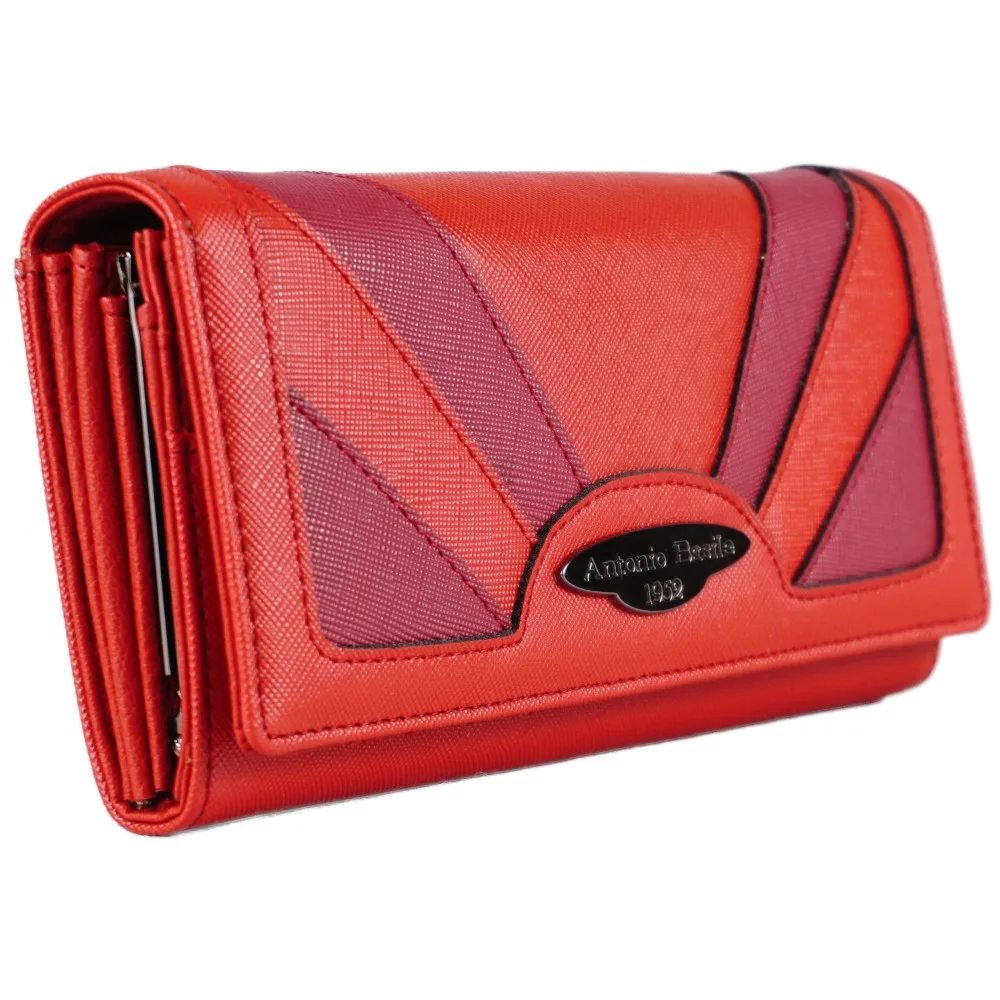 Női pénztárca varrással, csatos, műbőr, piros