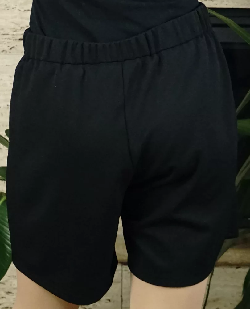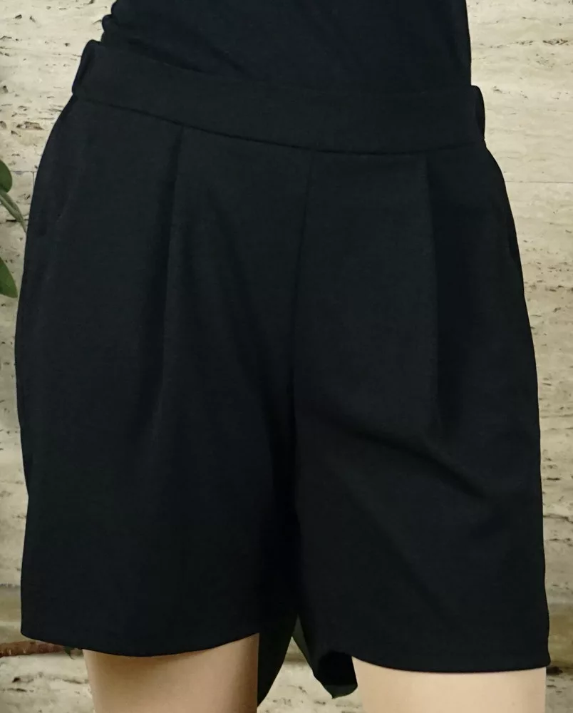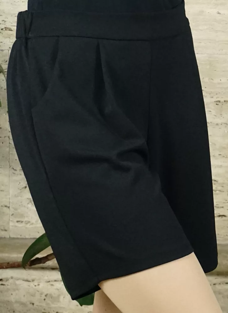 Női rövidnadrág elején zsebekkel, fekete színben.