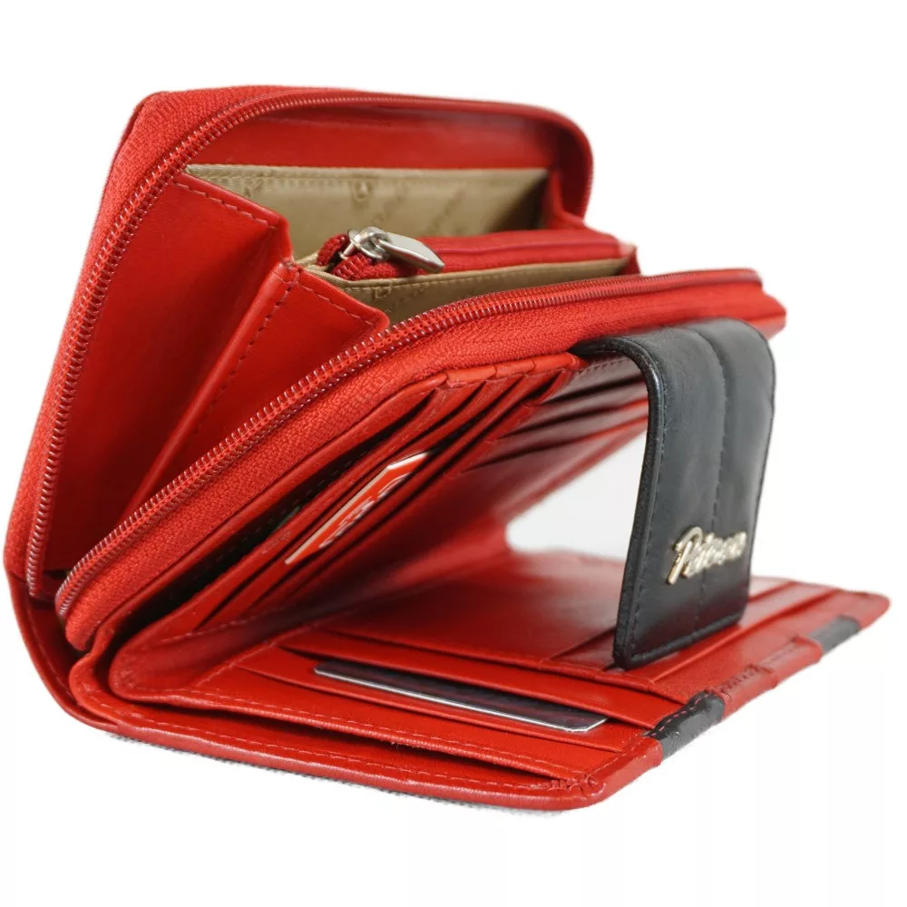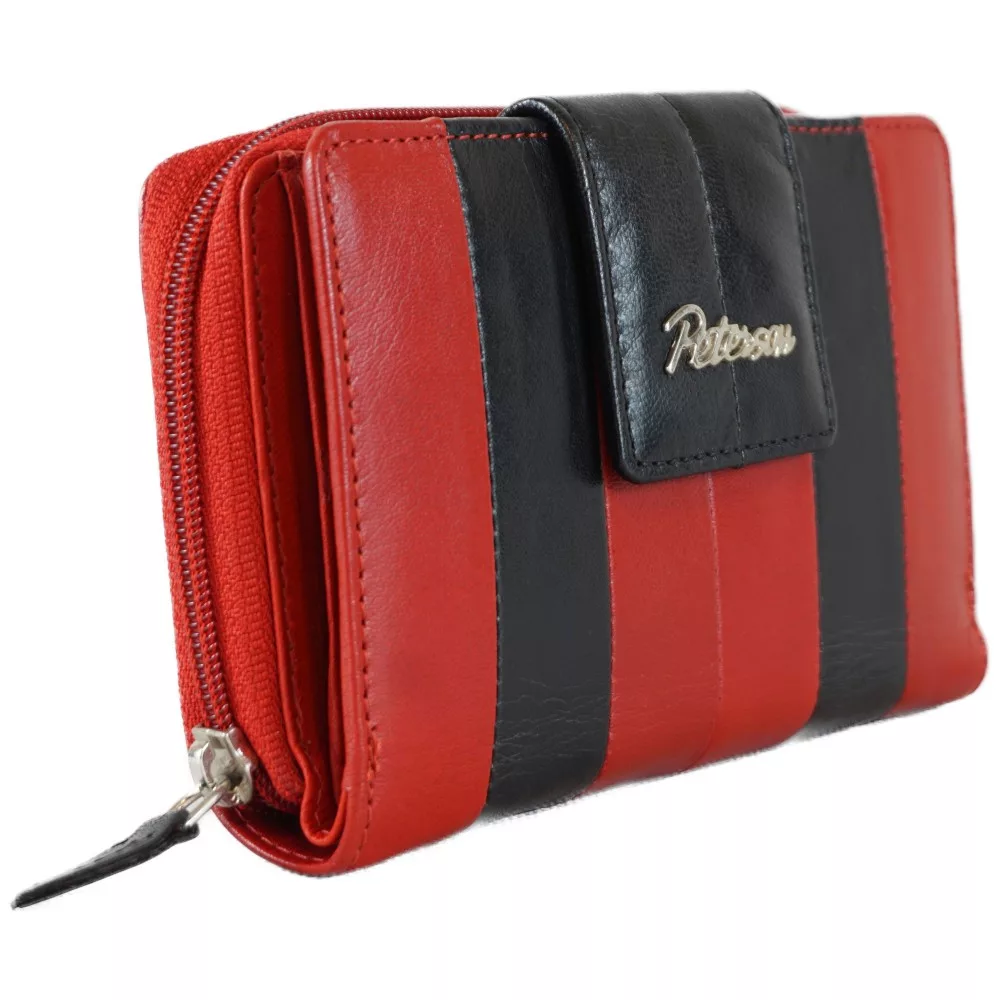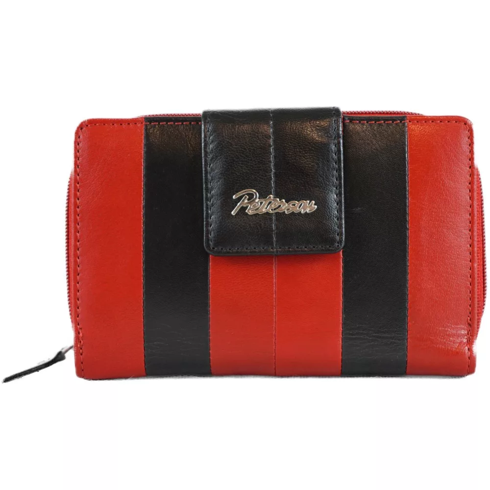 Peterson női pénztárca fekete sávval, bőr, piros színben.