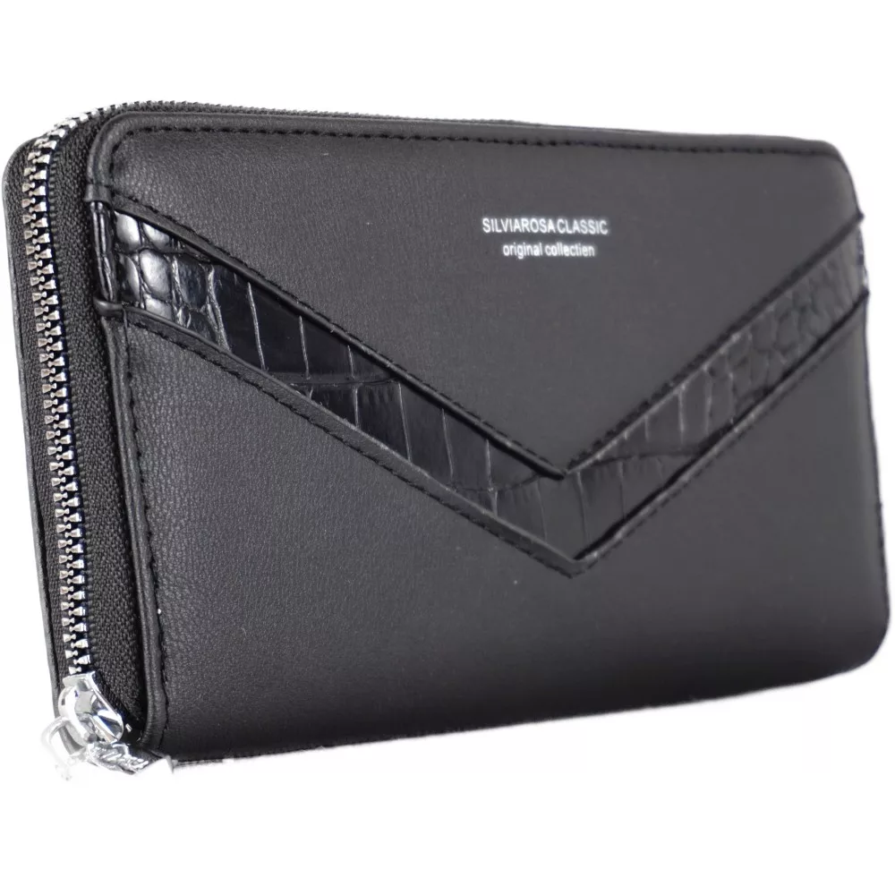 Silvia Rosa női pénztárca V mintával, műbőr, fekete