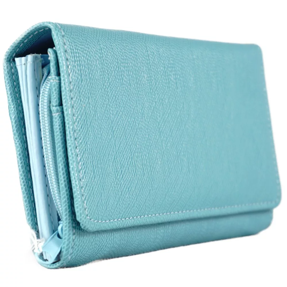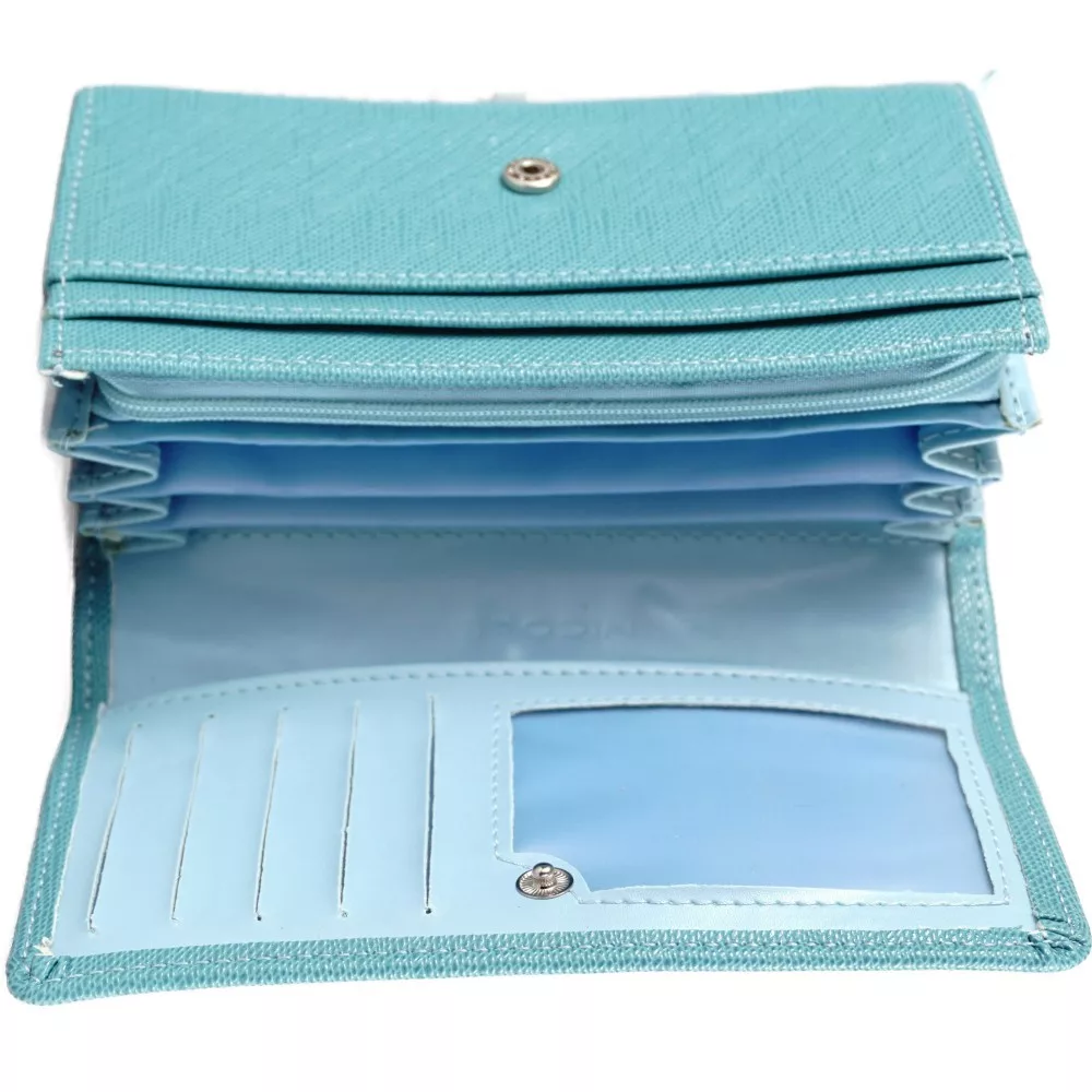 Sok rekeszes egyszerű női pénztárca, műbőr, kék